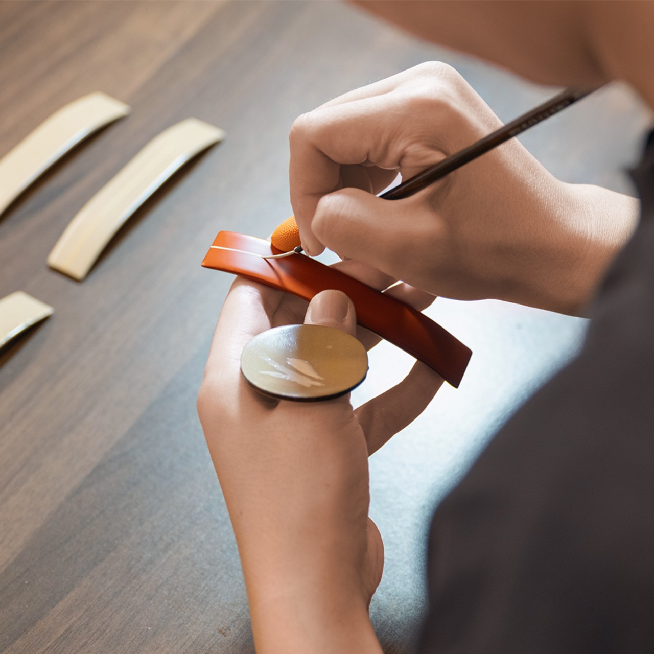 輪島から、タイムレスな美しさを。漆の凛とした気品を纏うヘアアクセサリー。輪島塗職人の技術を使い、一点一点想いを込めて仕上げられています。